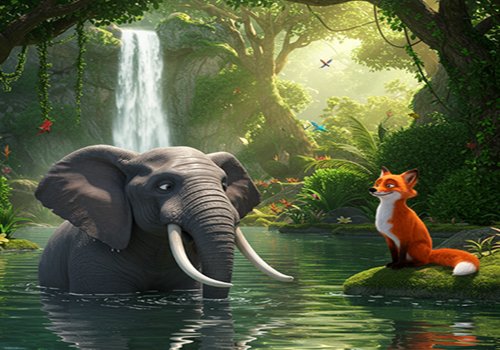 Once upon a time, a friendly elephant named Aira lived in the Gir Forest. He was the epitome of kindness and was well known for lending a helping hand. One day, Aira decided to take a shower and went to a nearby lake in the forest. He dived into the water and splashed it playfully. He started scrubbing himself while singing cheerfully, “La la la...splash more and do la la la, once a month, splash la la la.”